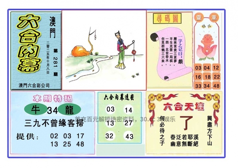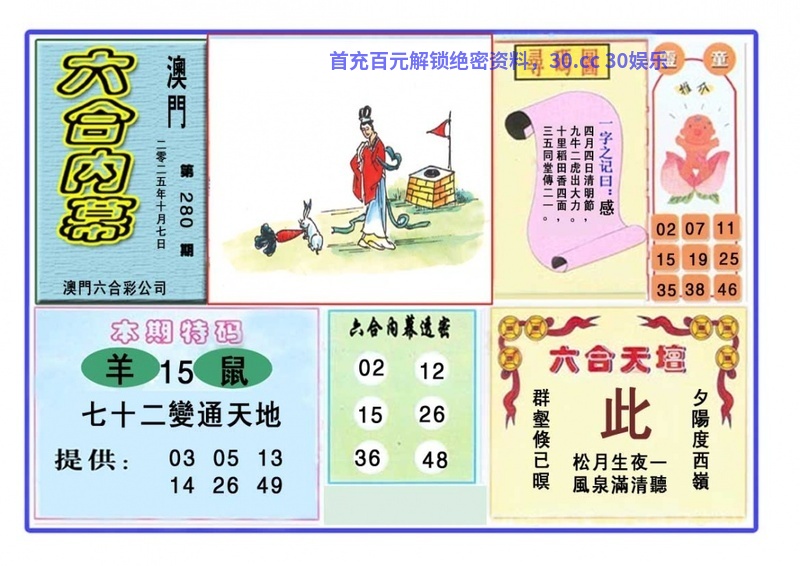 284期:必中天机/特七决/正版欲钱料/特码生肖诗/澳门天机诗
