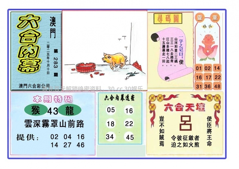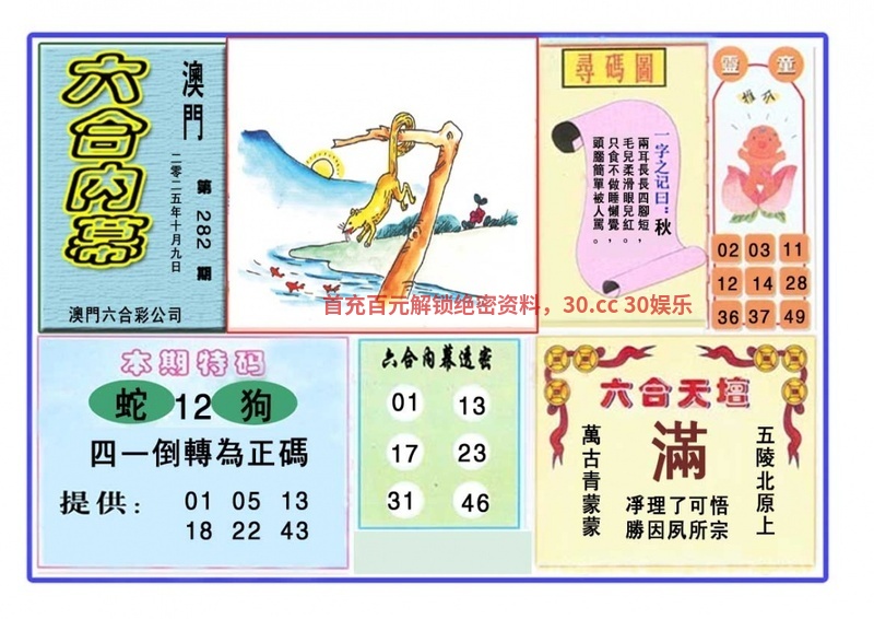 284期:密门仙机/心水特码信/黄大仙天书/波色生肖诗/生肖歇后语